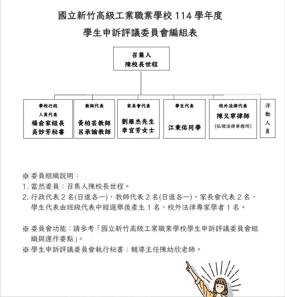 114學年度學生申訴評議委員編組表